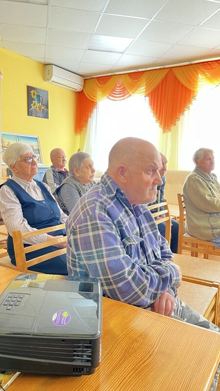 С удовольствием посмотрели отрывки из любимых фильмов таких, как "Неподдающиеся", "Девчата" и "Королева бензоколонки".А еще Елену Александровну ждут наши читающие жители так, как она приносит очень интересные книги.