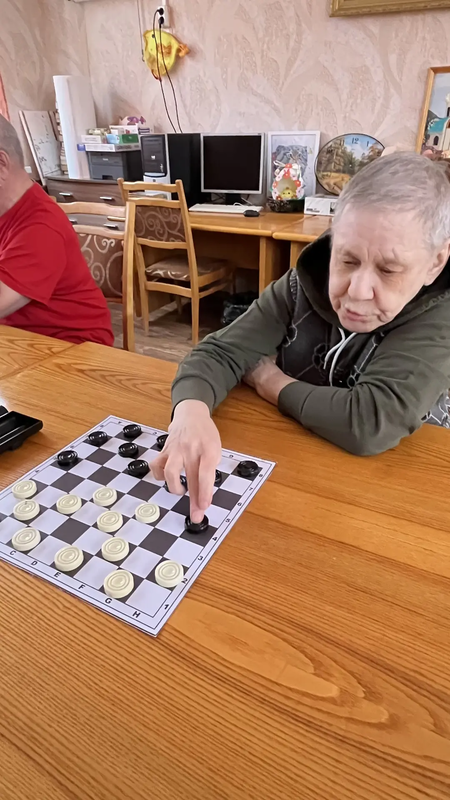 Сосредоточенные и бодрые, они обмениваются советами, разбирают сложные комбинации и тренируются, соревнуясь друг с другом. Атмосфера наполнена дружеским азартом и теплым общением — игра объединяет и придает бодрости.