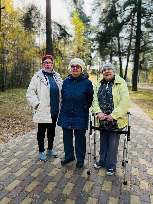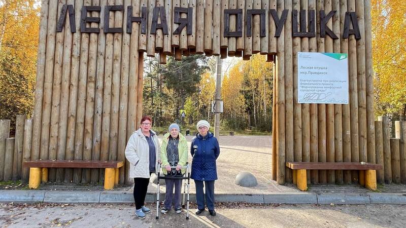 Женщины с удовольствием гуляли по тропинкам, рассматривая деревья и падающие с них листья, слушали пение птиц и Зоя Федоровна даже покачалась на качели, признавшись что это ее давняя мечта. Возраст — не граница.