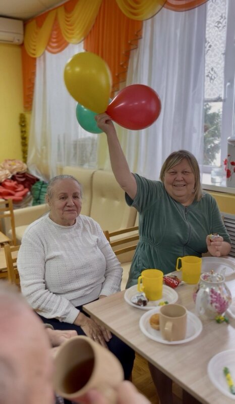 А еще поздравили Галину Васильевну - жительницу нашего дома-интерната с юбилеем и устроили настоящие танцы.