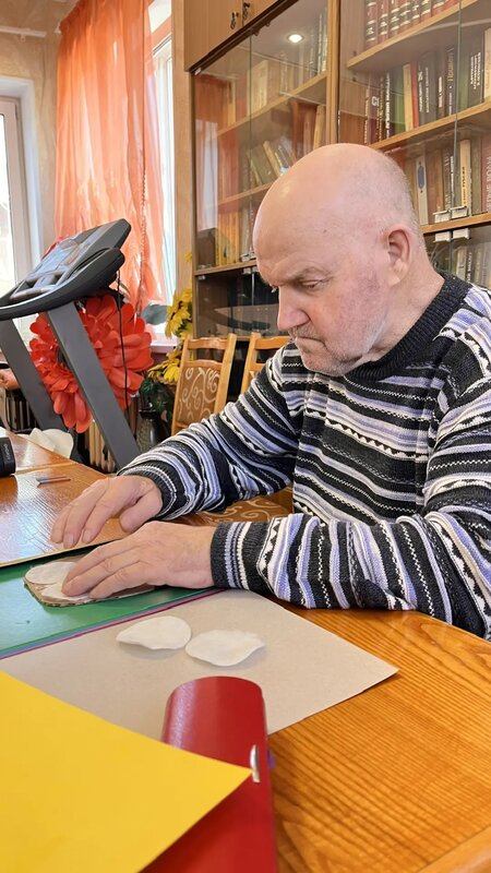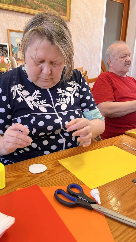 Делали поделку из картона и цветной бумаги, общались, слушали музыку и приятно провел время.