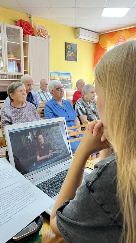 Посмотрели уникальное видео-интервью с внучкой Александра Ивановича Колобова, а так же видео, где С. М. Клещев, рассказывает о том, какие невероятные усилия были приложены для того, что бы жители и гости могли видеть этот уникальный памятник нашему соотечественнику.