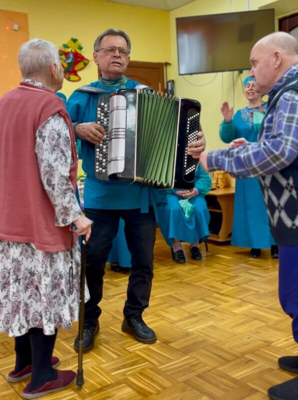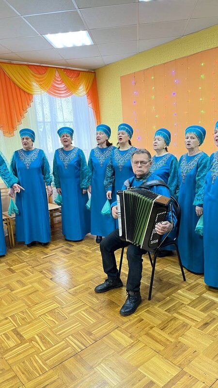 Сегодня мы встретили у себя в доме-интернате прекрасный ансамбль народной песни во главе с его руководителем Виктором Красноперовым.