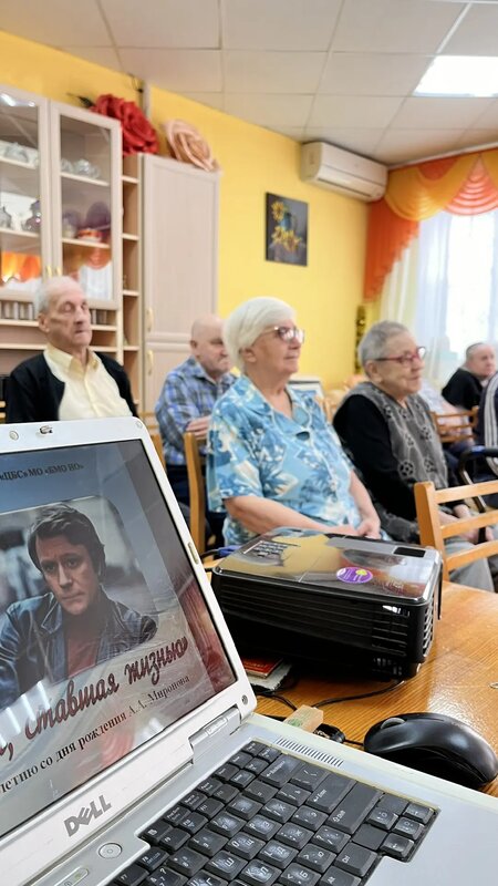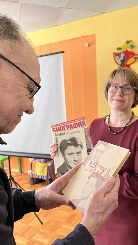 С удовольствием зрители посмотрели отрывки из любимых фильмов и внимательно слушали рассказ Елены Александровны о человеке, который посвятил всего себя целиком сцене театра и кино.
